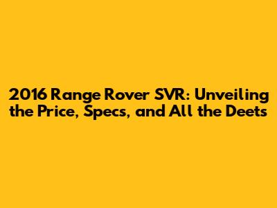 Hey there, gearheads! Are you curious about the 2016 Range Rover SVR? Well, you're in the right place! We're diving deep into the world of this beast, exploring its price, specs, and everything in between. The 2016 Range Rover SVR is more than just an SUV; it's a statement. A bold declaration of power, luxury, and performance. This guide will walk you through what makes the 2016 SVR so special, helping you understand its value in today's market. So, buckle up, and let's get started!