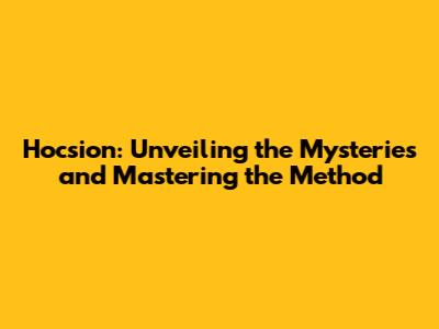 Hocsion: Unveiling The Mysteries And Mastering The Method