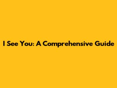I See You: A Comprehensive Guide
