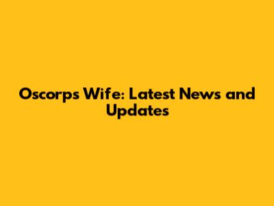 Oscorp's Wife: Latest News And Updates