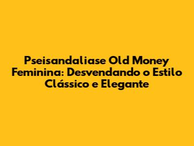 Pseisandaliase Old Money Feminina: Guia Completo E Estiloso