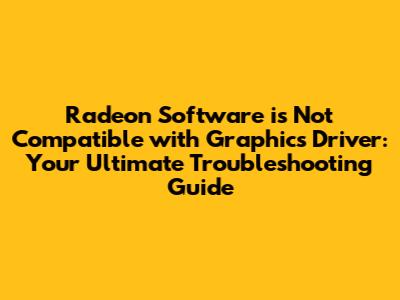 Hey everyone! So, you've been trying to update your AMD graphics drivers or maybe install the shiny new Radeon Software, but you're hitting a wall? The error message, "Radeon Software is not compatible with graphics driver," can be super frustrating, right? Don't sweat it, guys! This isn't a rare glitch, and more often than not, it's something we can fix with a few straightforward steps. Today, we're diving deep into why this incompatibility happens and, more importantly, how to get your AMD setup running smoothly again. We'll walk through common causes and provide clear, actionable solutions, so you can get back to gaming, creating, or whatever your heart desires without these annoying hiccups.