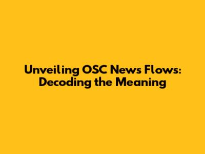 Unveiling OSC News Flows: Decoding The Meaning