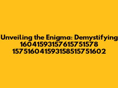 Unveiling The Mystery: What Is 16041593157615751578?